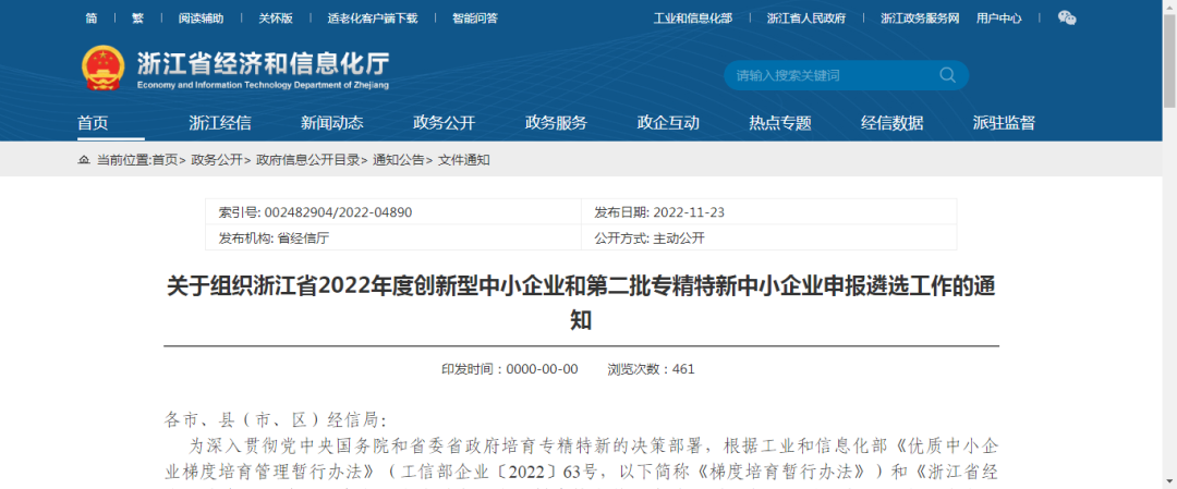 [转发通知]关于组织浙江省2022年度创新型中小企业和第二批专精特新中小企业申报遴选工作的通知