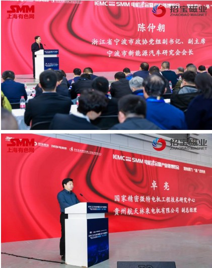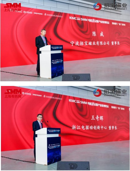 12月4日,论坛开幕式上,宁波市政协党组副书记、副主席、宁波市新能源汽车研究会会长陈仲朝,国家精密微特电机工程技术研究中心、贵州航天林泉电机有限公司副总经理卓亮,中国工业节能与清洁生产协会绿色电机系统专委会副会长、主任委员刘明日,SMM执行副总裁周柏,宁波招宝磁业有限公司董事长陈威、浙江电驱动创新中心董事长王奇辉出席会议并分别致辞。