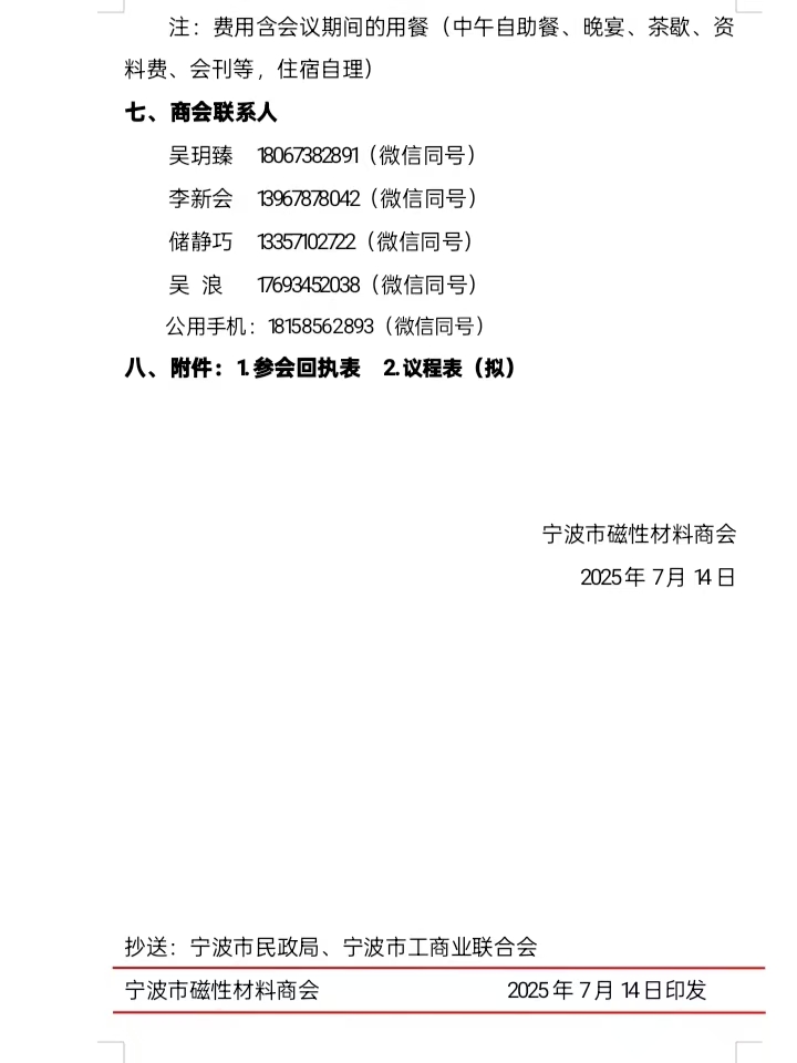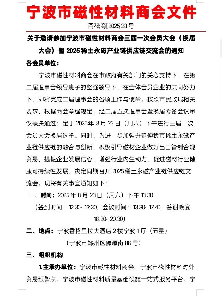 关于邀请参加宁波市磁性材料商会三届一次会员大会(换届大会)暨2025稀土永磁产业链供应链交流会的通知