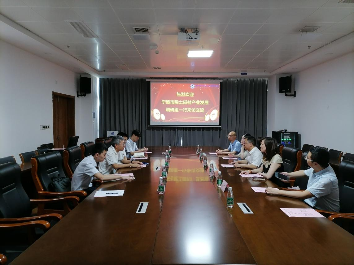 双方座谈中,中国稀土集团王崴平处长首先致欢迎词,宁波通商集团俞海峰则介绍通商公司情况及本次考察学习旨意,并围绕联合举办稀土磁材宁波论坛,整合资本、产业资源组建稀土磁性材料产业专项基金;推动中国稀土研究院与我市甬江实验室、中科院宁波材料所技术交流与合作机制;探讨与中国稀土集团原料供应合作机制,保障我市磁材企业稳定供给;探讨如何充分利用宁波磁材废料资源优势实施项目推动四个方面内容展开。宁波市国资委王处则介绍了市政府对于扶持新材料产业发展的相关金融政策。随后,吴秘书长介绍了商会与我市永磁产业运营发展情况、特色工作、所获荣誉等内容,尤其在资源再生利用上介绍了去年商会工作开展情况,也表达与中国稀土集团资源再生事业部探讨下一步合作的意愿。会中,双方在资源再生、资本合作、技术层面进行了深入交流与沟通。中国稀土集团王处、肖处分别对商会在资源循环利用、宁波磁材发展现状、市场应用情况等方面作了交流与探讨。最后,宁波通商控股集团俞总作会议总结,他表示返甬后会认真梳理交流内容,围绕原料采购、循环经济两大板块作个初步方案,再进一步与稀土集团对接沟通。