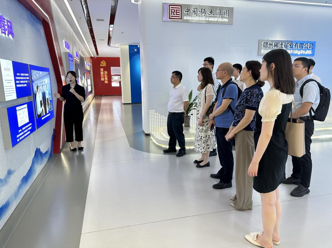 考察期间,在中国稀土集团新材料与终端应用事业部朱金亮带领下,考察团一行参观了中国南方稀土集团展示厅。