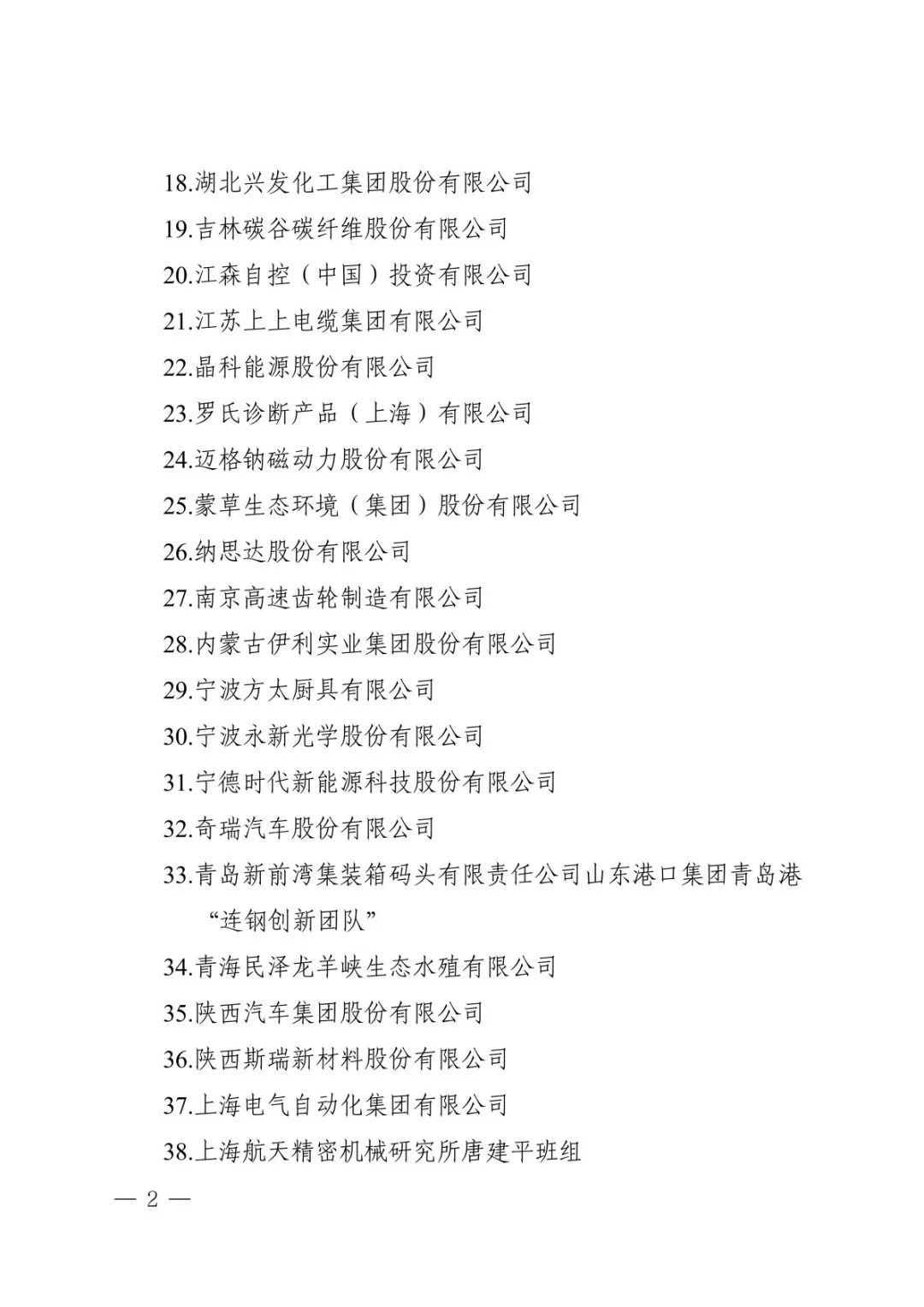 2.第五届中国质量奖提名奖建议名单