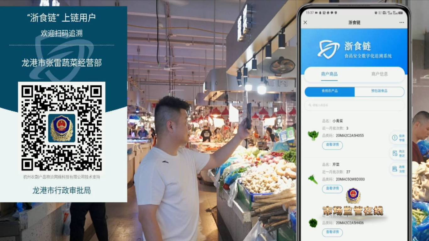 2023年,温州龙港市市场监管局以“浙里食安”快检一件事集成改革为载体,推动“菜篮子安全守护微改革”工作。在龙港市西排农贸市场,工作人员经过前期统一培训后,成为一名兼职采样人员,在市场营业时对食用农产品用二维码进行电子采样。