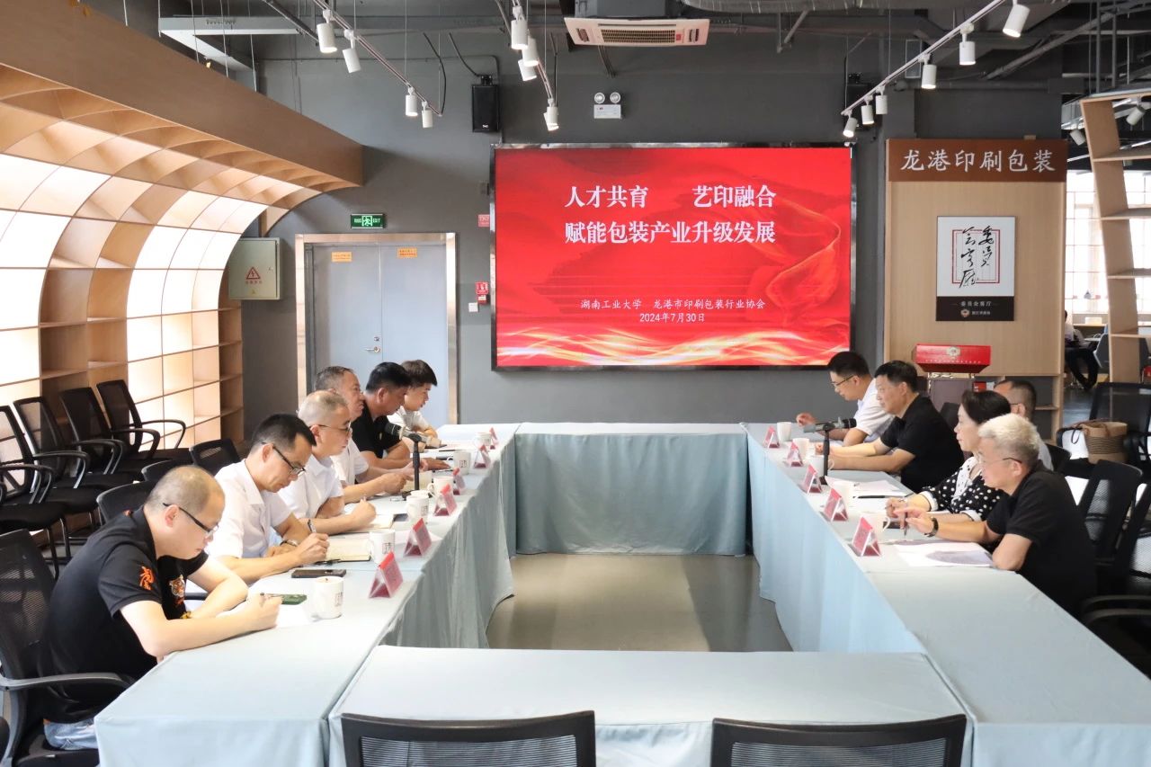 7月30日上午,湖南工业大学党委委员、副校长于惠钧率队来龙港参观考察印刷包装业,与龙港市印刷包装行业协会举行“人才共育 艺印融合,赋能包装产业升级发展”座谈会,并走访市印协常务副会长单位浙江欧跃科技有限公司。市市监局质检院院长曾焕润、市印协会长吴作榜、常务副会长吴世具、秘书长梁孝克和会员企业代表陈亦闯、项延豹参与接待。