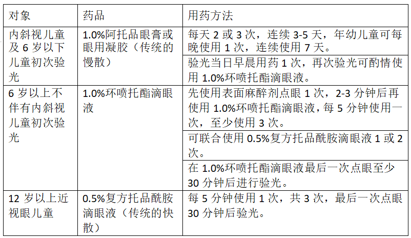 参考《中国儿童睫状肌麻痹及安全用药专家共识(2019)》的建议,散瞳用药方式归纳如下: