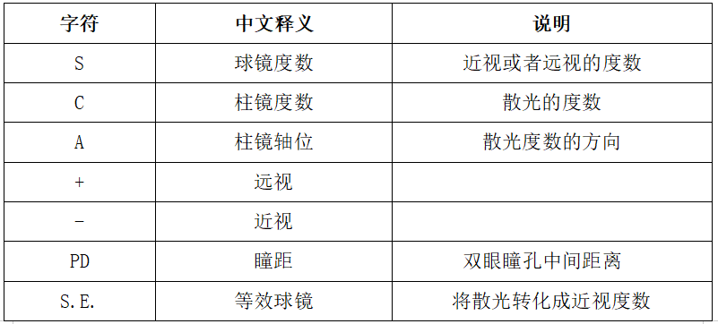 注意:柱镜度数(散光)前“+”表示远视散光,“-”表示近视散光。
