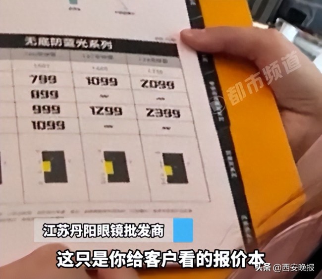 据媒体报道,在江苏丹阳,“中国眼镜之都”、亚洲最大的眼镜产品集散地、中国核心的眼镜生产基地,记者发现一款市面上常见的1.61折射率镜片,进货价仅15元,而报价本标价却高达799元,溢价超50倍。